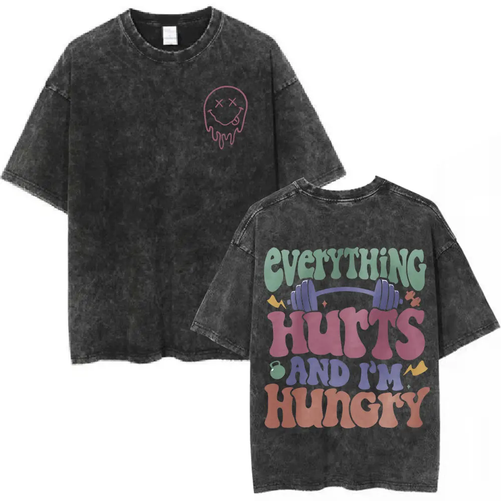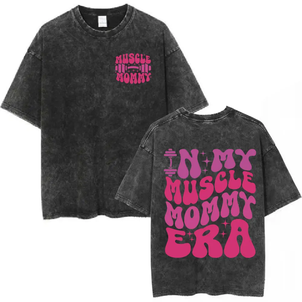 Gym Rat Muscle Mommy Pump Cover Vintage Washed T-shirt Powerlifting Workout Bodybuilding T Shirt Men Women Fitness Loose Tshirt